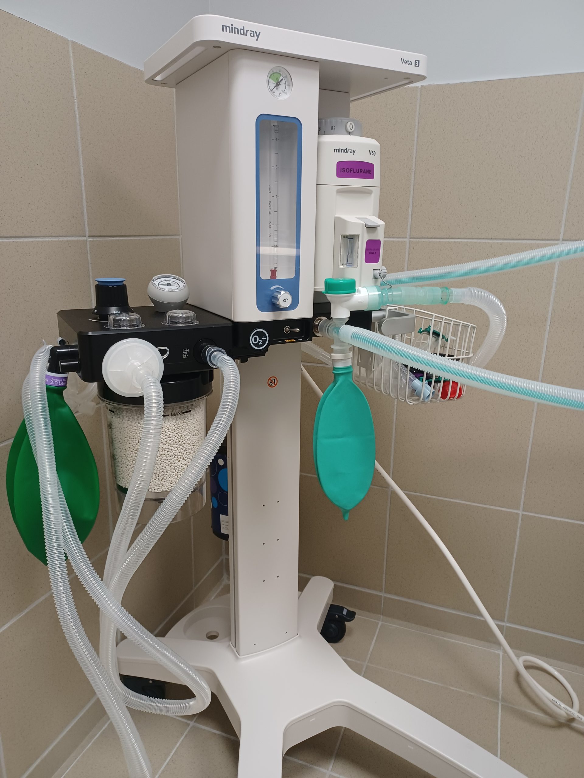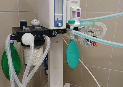 Bloc avec appareil d’anesthésie gazeuse moderne et monitoring.