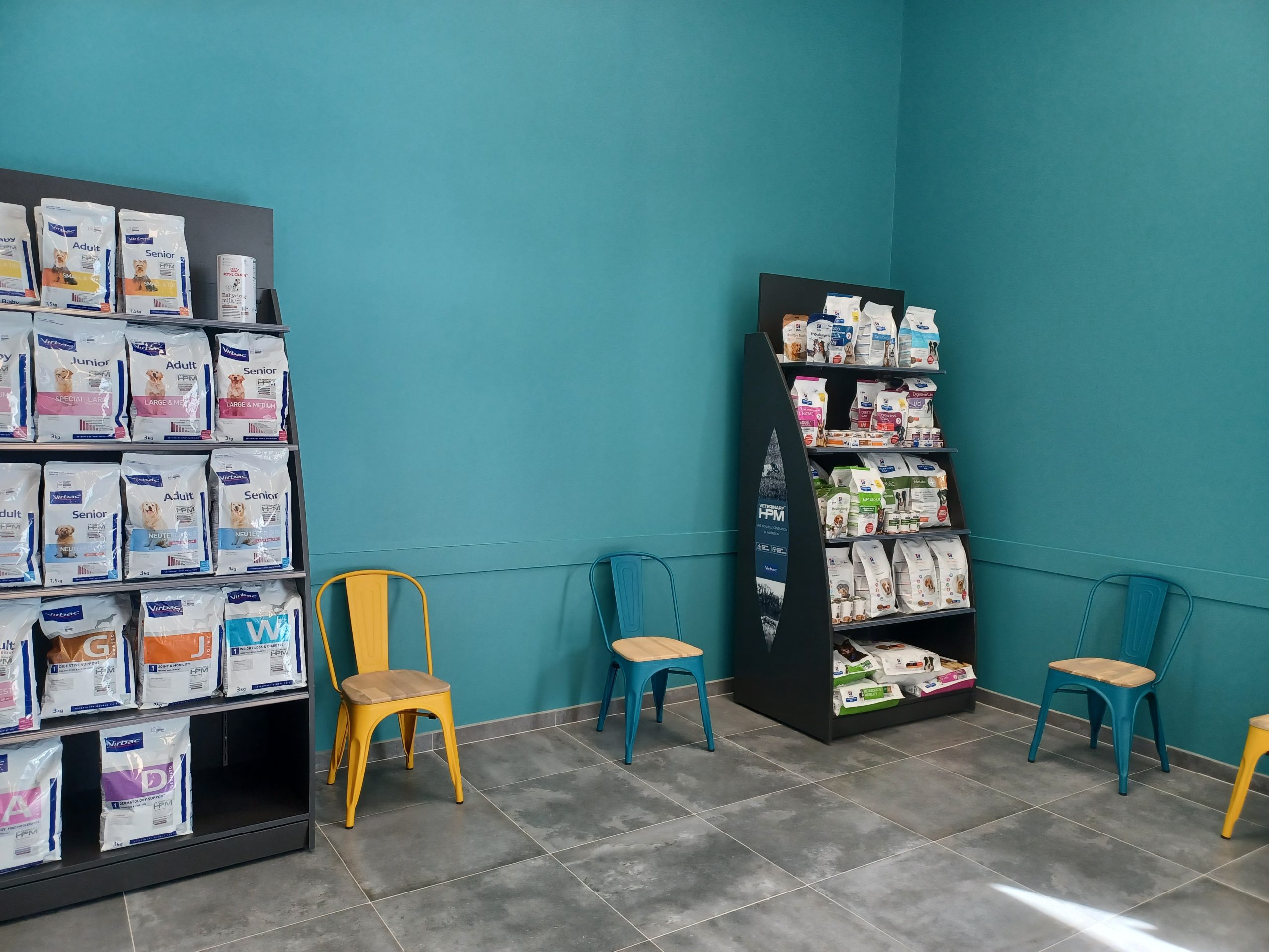L’espace d’attente des chats est séparé de celui des chiens.